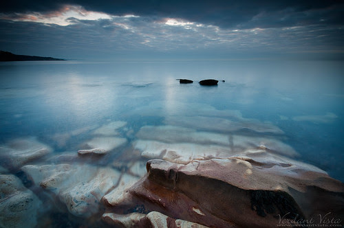 With the sun well below the horizon the sky was illuminated by hues from blue to pink above East Beach's mighty sand dunes as big rollers gently swept in. The vantage point afforded by the breakwater allows you to get right above the incoming waves and see them from a different perspective.